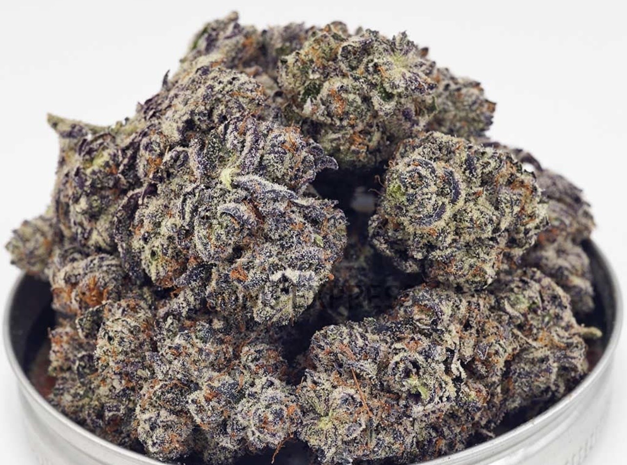 Purple MKU mixes indigo buds with MK Ultra’s heavyweight punch! No fluff, just real-deal indica fire. This strain is bred in BC by unknown marijuana breeders by combining the iconic MK Ultra and PK. If you know strains, you know that combo’s not playing. THC ranges between 22% and 24%, enough to mellow even the busiest brain. Purple MKU nugs are chunky and colourful. Dark greens leaves, deep violet hues, bright orange hairs, and that sticky icky resin coating it all. The scent of Purple MKU is unmistakable. It’s like grape candy crushed into earth and pine, with just a touch of skunk. Terpenes like myrcene and pinene gives you that rich flavour. One toke of Purple MKU and your body may start feeling heavy, like your limbs just clocked out for the night. Great for pain, insomnia, or anxiety.